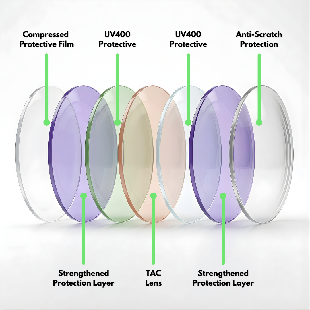 Behind every lens is a multi-layered defense system: UV400 protection, anti-scratch coating, and reinforced TAC construction for crisp, high-contrast vision. You get the sharp view you need to track every ball flight, with the durability to handle cart rides, trunk tosses, and everyday wear.